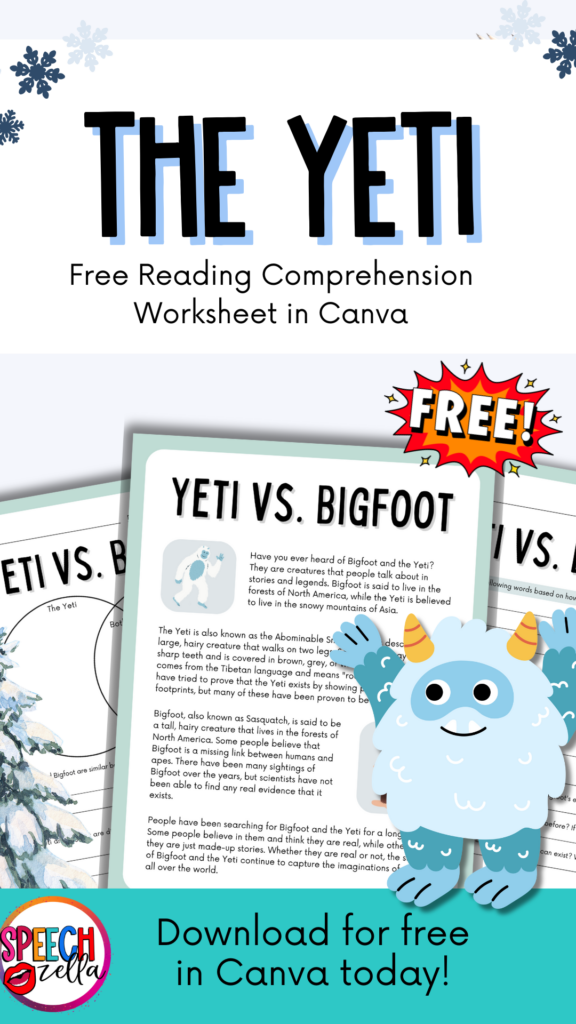 How to Catch a Yeti activities are fun in speech therapy because they are both silly and mysterious. They feel playful and fun for kids of all ages. Keep reading below to get all the free activities today!
